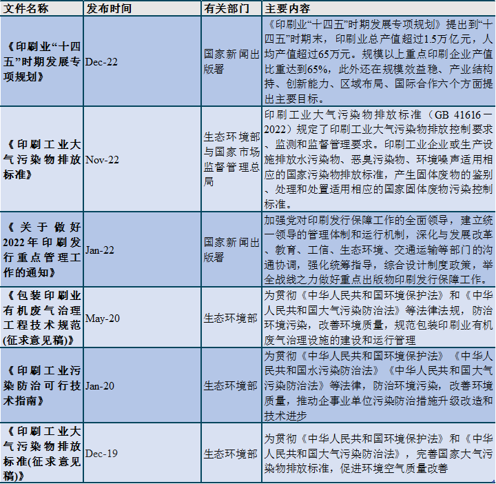 圖表 2印刷行業(yè)政策匯總