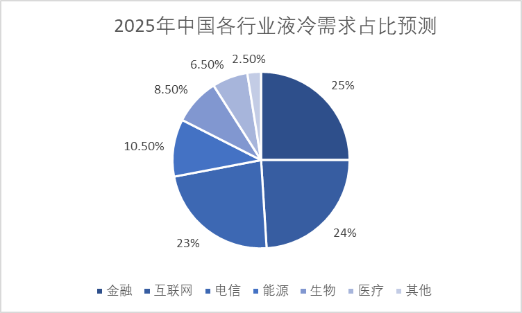 從行業(yè)的角度看,互聯(lián)網(wǎng)、電信、政府和教育是液冷服務(wù)器最大的采購(gòu)行業(yè),占整體液冷服務(wù)器市場(chǎng)80%以上的份額;而金融、醫(yī)療、制造、公共事業(yè)等其他傳統(tǒng)行業(yè)的龍頭企業(yè)也開始積極部署液冷服務(wù)器,規(guī)劃綠色、可持續(xù)發(fā)展的數(shù)據(jù)中心建設(shè)。預(yù)計(jì)2025年互聯(lián)網(wǎng)行業(yè)液冷數(shù)據(jù)中心占比達(dá)24.0%,金融行業(yè)占比達(dá)25.0%、電信行業(yè)占比達(dá)23.0%、能源行業(yè)占比達(dá)10.5%,生物、醫(yī)療和政務(wù)等行業(yè)需求將加快融入通用數(shù)據(jù)中心新業(yè)態(tài)。