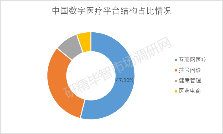 目前,數(shù)字醫(yī)療平臺中占比最多的是互聯(lián)網(wǎng)醫(yī)療,占比達(dá)47.9%。其次分別為掛號問診、健康管理、醫(yī)藥電商、醫(yī)生助手、醫(yī)療知識