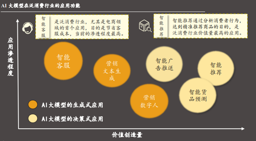AI 大模型生成式應(yīng)用包含智能客服機(jī)器人、廣告營(yíng)銷、營(yíng)銷數(shù)字人等。