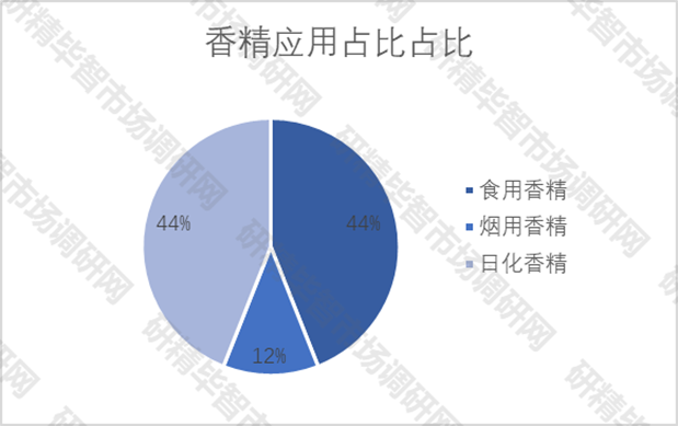 香料多直接應(yīng)用于香精的生產(chǎn),少數(shù)直接用于食品添加和日化行業(yè);香精的下游應(yīng)用方包含食品、日化、煙草以及其他化工業(yè)行業(yè)。香精香料下游應(yīng)用領(lǐng)域分布中。食用香精和日化香精為香精香料主要的需求來源,各占市場44%,其中飲料市場、乳制品市場分別占食用香精香料市場份額的43和17%;洗滌用品、化妝品和高檔香水分別占日化香精市場份額的32%、27%和17%;煙用香精的使用占到12%。