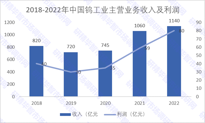 營業(yè)收入創(chuàng)歷史新高。2022年中國鎢工業(yè)頂住了原輔材料、能源價格大幅波動以及宏觀環(huán)境的負面影響,行業(yè)運行實現(xiàn)持續(xù)增長,根據(jù)市場調研的數(shù)據(jù)顯示,中國鎢行業(yè)主營業(yè)務收入為1,140億元,同比增長7.6%;利潤80億元,同比增長35.6億元。