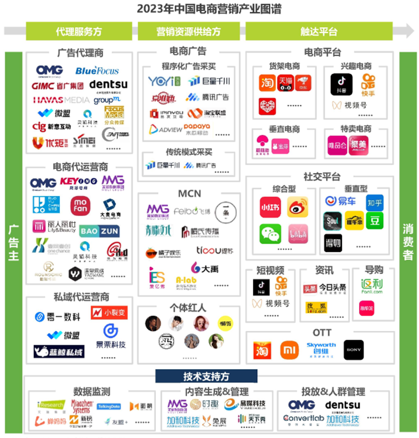 各個(gè)板塊的頭部服務(wù)商已經(jīng)在優(yōu)勢(shì)領(lǐng)域深耕多年,沉淀大量實(shí)踐經(jīng)驗(yàn)和案例,目前在品牌主追求 “品效銷”一體化的目標(biāo)牽引下,逐漸向上下游或平行賽道拓展業(yè)務(wù),轉(zhuǎn)型成為擁有廣告投放能力+內(nèi)容策劃能力+直播/店鋪代運(yùn)營(yíng)能力+紅人資源的整合營(yíng)銷公司,提升自身的市場(chǎng)競(jìng)爭(zhēng)優(yōu)勢(shì)。