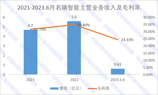 根據(jù)市場調(diào)研發(fā)現(xiàn),名瑞智能主要從事智能包裝設(shè)備的研發(fā)、制造和銷售, 2022年,名瑞智能在中國給袋式包裝裝機制造企業(yè)中市場占有率位列第一。研究報告顯示,2023年上半年名瑞智能營收為0.63億元,毛利率達(dá)到24.43%。