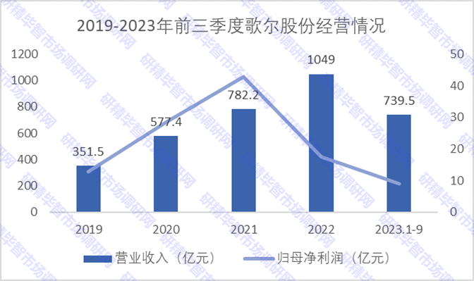 2023年前三季度,歌爾股份實(shí)現(xiàn)營(yíng)業(yè)收入739.5億元,同比下降0.28%;實(shí)現(xiàn)歸母凈利潤(rùn)8.92億元,同比下降76.77%