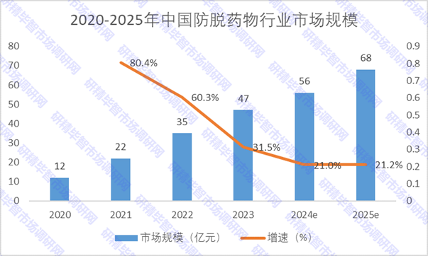 研究報告顯示,目前中國脫發(fā)人群突破2.5億人,每6人中就有約1人受脫發(fā)影響,同時流行病數(shù)據(jù)顯示,全球雄脫患者都呈現(xiàn)加速上升趨勢,未來隨著脫發(fā)患者的不斷增多,相關藥物的市場前景將更為廣闊,因此防脫藥品市場近年將呈現(xiàn)持續(xù)擴張的態(tài)勢。2021-2023年,防脫藥品市場規(guī)模增速逐步放緩,由于疫情影響,民眾大多居家辦公,對于個人形象在意程度不高,因此購買防脫藥品意愿不夠強烈。2023年后,防脫藥品市場規(guī)模將穩(wěn)定增長。