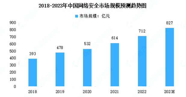 隨著《網(wǎng)絡(luò)安全審查辦法》《互聯(lián)網(wǎng)信息服務(wù)算法推薦管理規(guī)定》《數(shù)據(jù)出境安全評估辦法》頒布實施,網(wǎng)絡(luò)安全法律法規(guī)體系化、縱深化態(tài)勢更加明顯,政策法規(guī)紅利持續(xù)釋放,疊加企業(yè)和個人數(shù)字化需求不斷攀升,我國網(wǎng)絡(luò)安全市場持續(xù)擴大。根據(jù)市場調(diào)研數(shù)據(jù),2022年我國網(wǎng)絡(luò)安全市場規(guī)模約712億元,預(yù)計未來增速仍將保持在15%以上,到2023年市場規(guī)模將達到827億元。