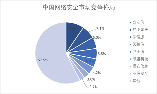當(dāng)網(wǎng)絡(luò)安全市場(chǎng)進(jìn)入穩(wěn)健增長(zhǎng)階段后,頭部企業(yè)在規(guī)模和資源上擁有明顯優(yōu)勢(shì)。隨著時(shí)間推移,頭部企業(yè)擁有的市場(chǎng)份額會(huì)逐漸擴(kuò)大。行業(yè)研究報(bào)告顯示,近年來(lái)我國(guó)網(wǎng)絡(luò)安全市場(chǎng)集中度持續(xù)提升。奇安信、啟明星辰、深信服和天融信四家公司的市場(chǎng)占有率均達(dá)到或超過(guò)了5%。頭部企業(yè)收入增速顯著高于行業(yè)平均增速,未來(lái)兩三年內(nèi)頭部企業(yè)市占率仍將保持小幅增長(zhǎng)趨勢(shì)。