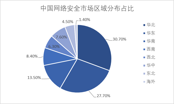 從網(wǎng)絡(luò)安全市場(chǎng)分布區(qū)域來(lái)看,根據(jù)信通院數(shù)據(jù),華北、華東、華南三大區(qū)域仍是網(wǎng)絡(luò)安全市場(chǎng)發(fā)展的核心區(qū)域,三大區(qū)域市場(chǎng)占比超70%,占比分別是30.7%、27.7%、13.5%。由于華北、華東、華南經(jīng)濟(jì)發(fā)展水平相對(duì)較高,區(qū)域內(nèi)行業(yè)客戶對(duì)網(wǎng)絡(luò)安全的需求較為旺盛。其中,華東、華北區(qū)域市場(chǎng)份額提升較大,主要得益于該區(qū)域政府在網(wǎng)絡(luò)安全方面的發(fā)展與促進(jìn)計(jì)劃。