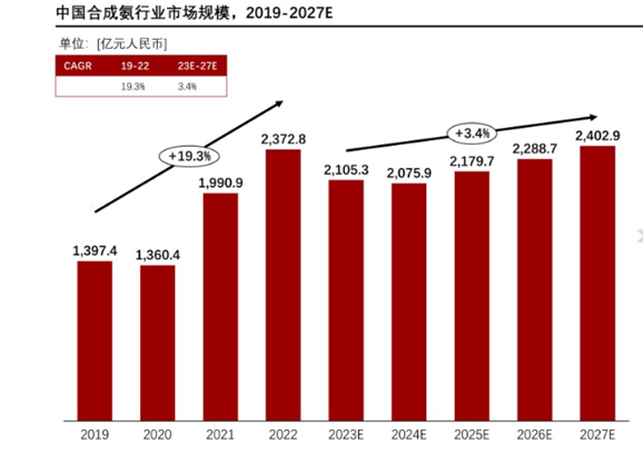 中國合成氨行業(yè)市場規(guī)模與國民經(jīng)濟發(fā)展、農(nóng)業(yè)生產(chǎn)情況高度關(guān)聯(lián)。過去五年間,受下游氮肥需求量持續(xù)增長以及農(nóng)業(yè)用氨和工業(yè)用氨需求規(guī)模持續(xù)擴大的原因,中國合成氮行業(yè)產(chǎn)量有較大提升。