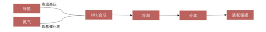 反應(yīng)壓力20-50MPa,反應(yīng)溫度350-500℃,在鐵基催化劑作用下,綠氫和氮氣合成綠氨。