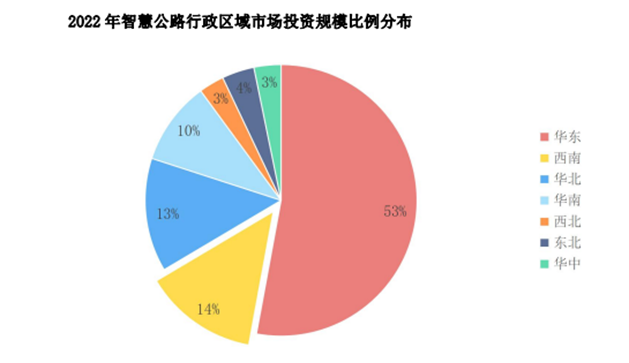 根據(jù)市場調(diào)研數(shù)據(jù),2022 年智慧公路市場投資規(guī)模約34 億元,同比2021 年增長26.0%。從投資規(guī)模區(qū)域分布來看,華東地區(qū)作為我國經(jīng)濟發(fā)展的主要區(qū)域,智慧公路市場投資規(guī)模遠超其它區(qū)域,主要集中在山東和浙江兩??;其次是西南和華北區(qū)域,分別集中在四川省和河北省。