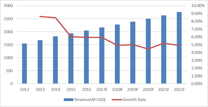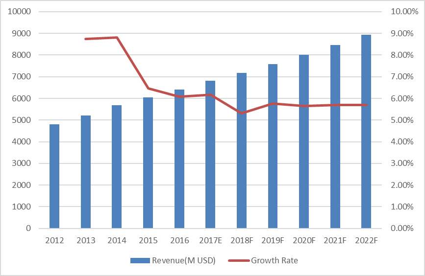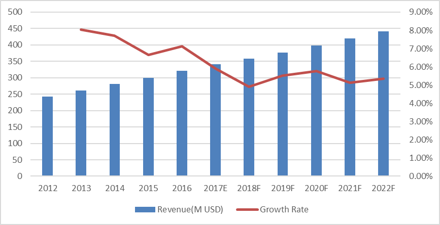 歐洲市場(chǎng)在過(guò)去幾年已經(jīng)成熟并穩(wěn)定發(fā)展,未來(lái)幾年將保持這一趨勢(shì),2016年為18.49億美元,2022年將達(dá)到25.57億美元,2016年至2022年的復(fù)合年增長(zhǎng)率為5.55%。但在時(shí)代的變化中,歐洲也充滿了許多不確定性,包括政治選舉、貿(mào)易政策和歷史問(wèn)題。