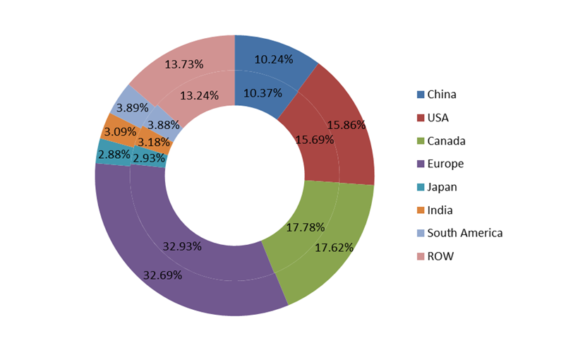 根據(jù)需求,全球漂白化學熱機械漿(BCTMP)市場由中國主導,2019年占41.73%的市場份額,預計2030年將達到211667萬噸的消費量,2020-2030年預測期的復合年增長率為2.40%。
