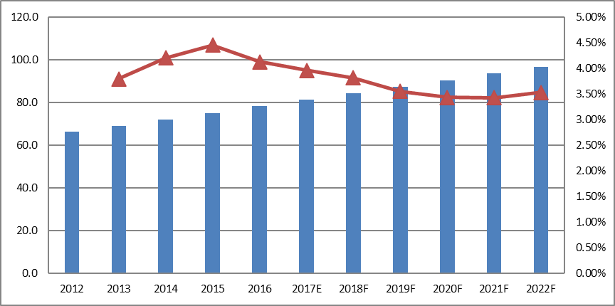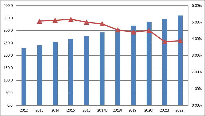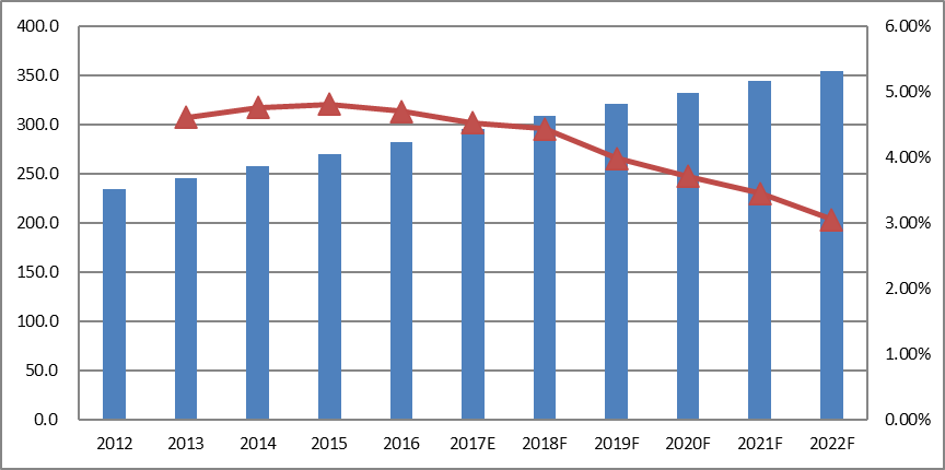 2.在生產(chǎn)市場(chǎng),全球產(chǎn)值從2012年的7.524億美元增至2017年的9.247億美元。