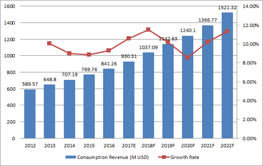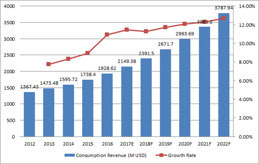 12.4按類型劃分的全球能量回收通風(fēng)系統(tǒng)消耗收入預(yù)測(cè)(2017E-2022F)