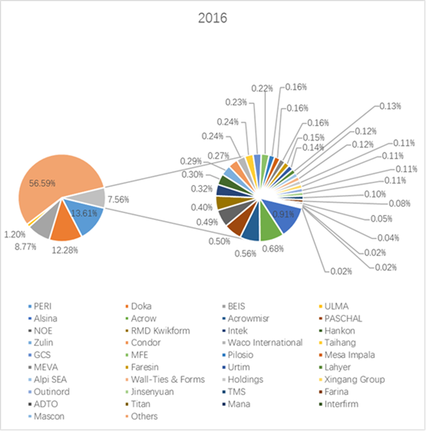 2領(lǐng)先的制造商主要是PERI、Doka、BEIS、ULMA和Alsina。PERI是最大的制造商;2016年,其全球市場(chǎng)收入超過13%。接下來是多卡和BEIS。