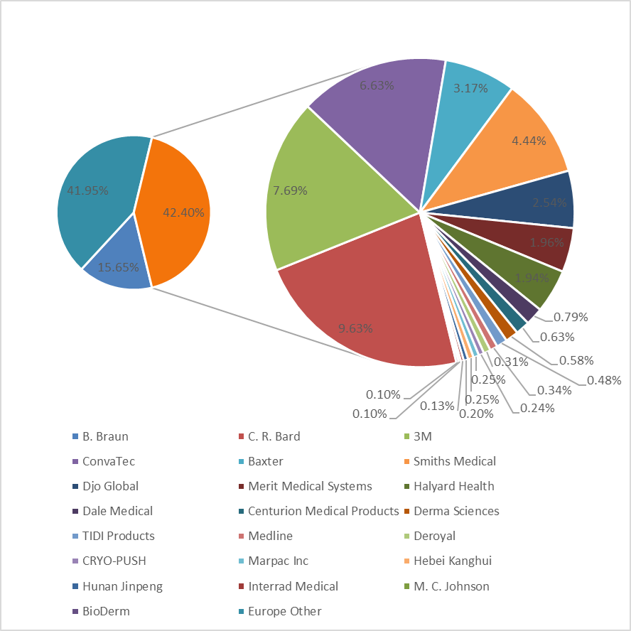 圖:2018年歐洲導管穩(wěn)定裝置主要參與者收入市場份額