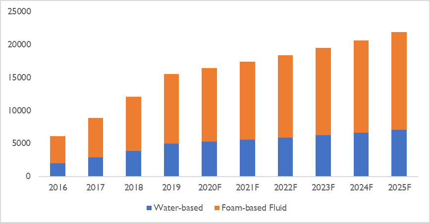 3.水基和泡沫基流體是兩種產(chǎn)品類(lèi)型,泡沫基流體因其對(duì)水和環(huán)境的破壞性低而廣受歡迎。