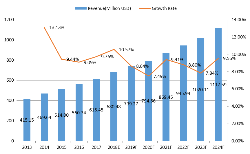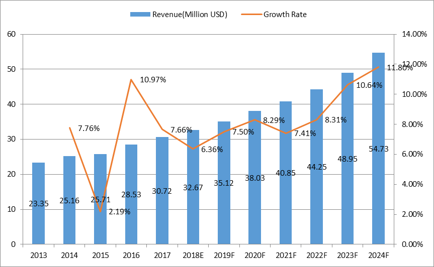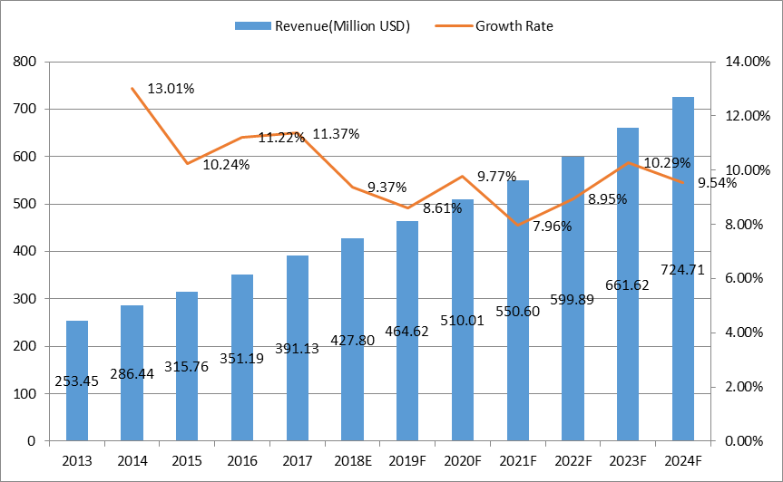 12.1.2全球人類毛發(fā)延伸收入和增長率預測(2019-2024)
