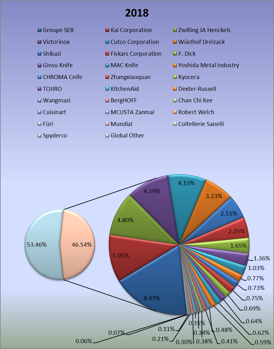 主要制造商有Groupe SEB、Kai Corporation、Zwilling JA Henckels、Victorinox、Cutco Corporation、Wüsthof Dreizack、Shibazi、Fiskars Corporation、F.Dick、Ginsu Knife、MAC Knife、Yoshida Metal Industry、CHROMA Cnife、張小泉、京瓷、TOJIRO、KitchenAid、Dexter Russell、Wangmazi、BergHOFF、Chan Chi Kee、Cuisinart、MCUSTA Zanmai、Robert Welch、Füri、Mundial、Coltellie Sanelli、Spyderco等。