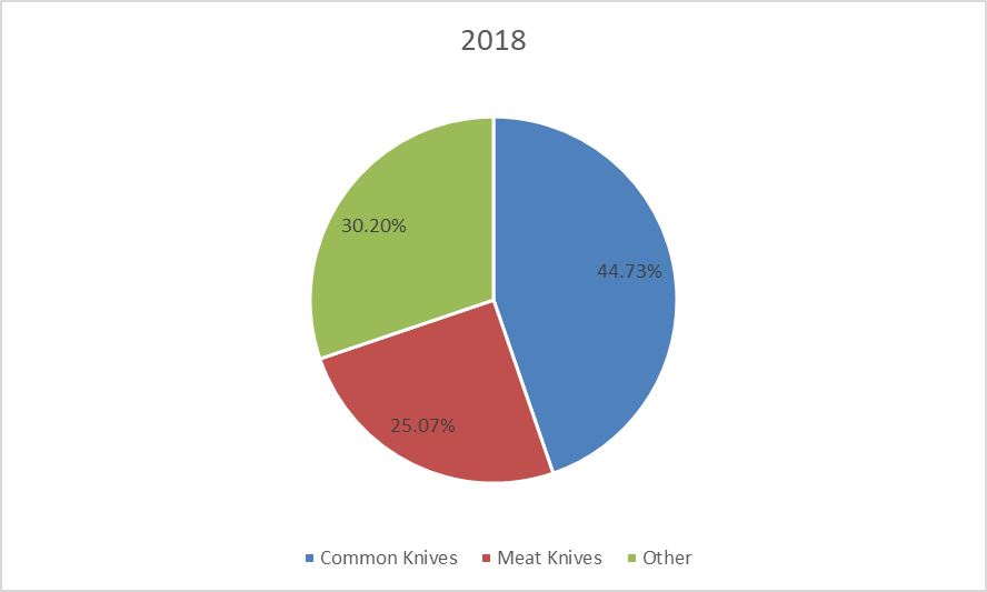 圖:2018年按類型劃分的全球廚房刀具收入市場份額(%)