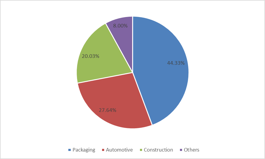 1.發(fā)泡聚苯乙烯(EPS)是一種硬質(zhì)泡沫塑料,有多種形狀和應(yīng)用。它用于魚(yú)盒子、電器消費(fèi)品包裝和建筑隔熱板。這些是最常見(jiàn)的用途,我們將在本文檔中提及其他用途。XPS(擠出的聚苯乙烯)也是基于聚苯乙烯的塑料泡沫,其通過(guò)在擠出過(guò)程中添加氣體而不是通過(guò)膨脹含有氣體的珠粒而形成;這就是EPS的形成方式。XPS的一個(gè)眾所周知的用途是真空成型的聚苯乙烯托盤(pán),用于我們?cè)诔锌吹降男》菔澄?。擠出的聚苯乙烯泡沫是僅2-3mm厚的精細(xì)層壓板。E發(fā)泡聚苯乙烯的應(yīng)用范圍非常廣泛,三類是:l包裝l建筑l其他應(yīng)用。包裝是其最大的下游市場(chǎng),占2018年消費(fèi)量的44.33%。