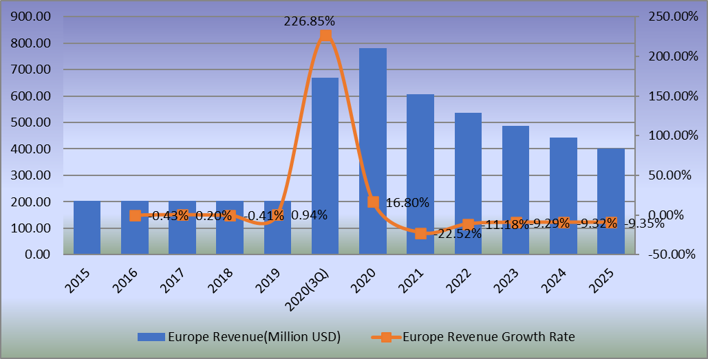 3.4按類型劃分的歐洲隔離服生產(chǎn)和收入(2015-2025年)