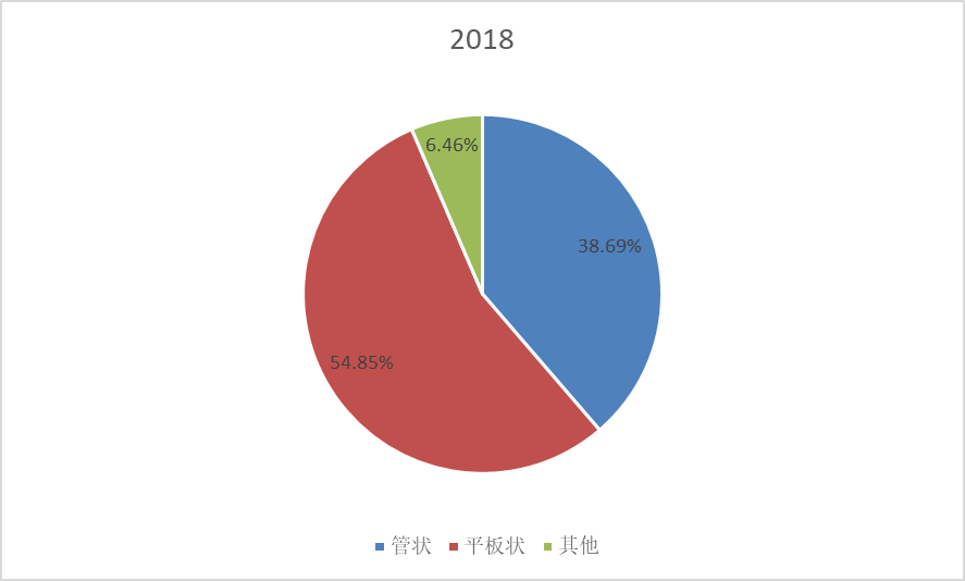 SOFC組的結(jié)構(gòu)主要為:管狀(tubular)、平板型(planar)和整體型(unique)三種,其中平板型因功率密度高和制作成本低而成為SOFC的發(fā)展趨勢。在2018年,其中平板型占54.85%。