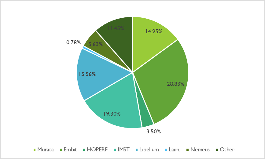圖:2018年中國LoRaWAN LoRa模塊收入份額
